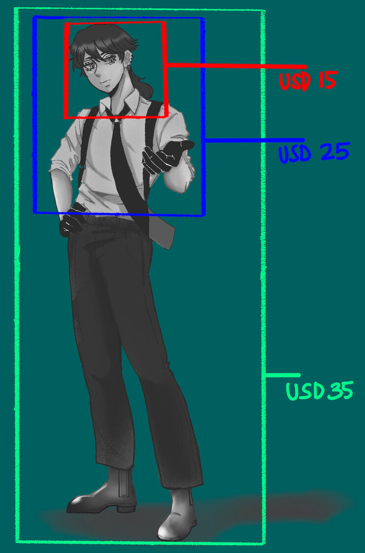 | Backgrounds: | +$10–$50 | (depending on complexity of the details) |